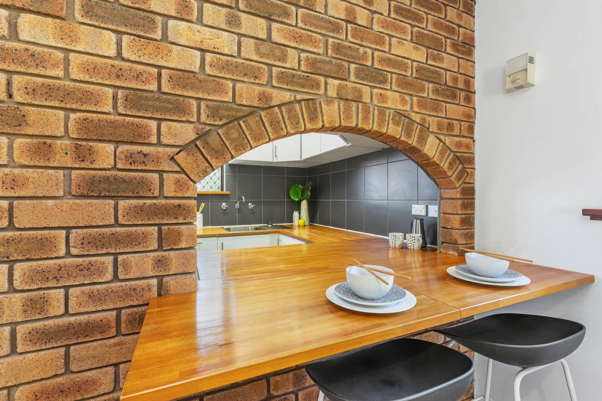 A first floor, end unit with an open plan living and dining space leading out to a private breezy balcony allowing you to relax and take in the city views. The fully renovated kitchen with electric cook top and ample storage will have you cooking up a storm. The combined bathroom and laundry are in pristine original retro condition. The WC is conveniently separate and you will find ample storage for your linen, suitcases and appliances in your hallway cupboard.