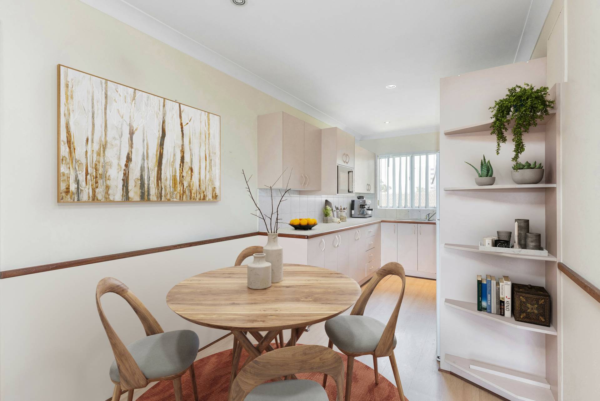 Compact kitchen, lounge dining combined