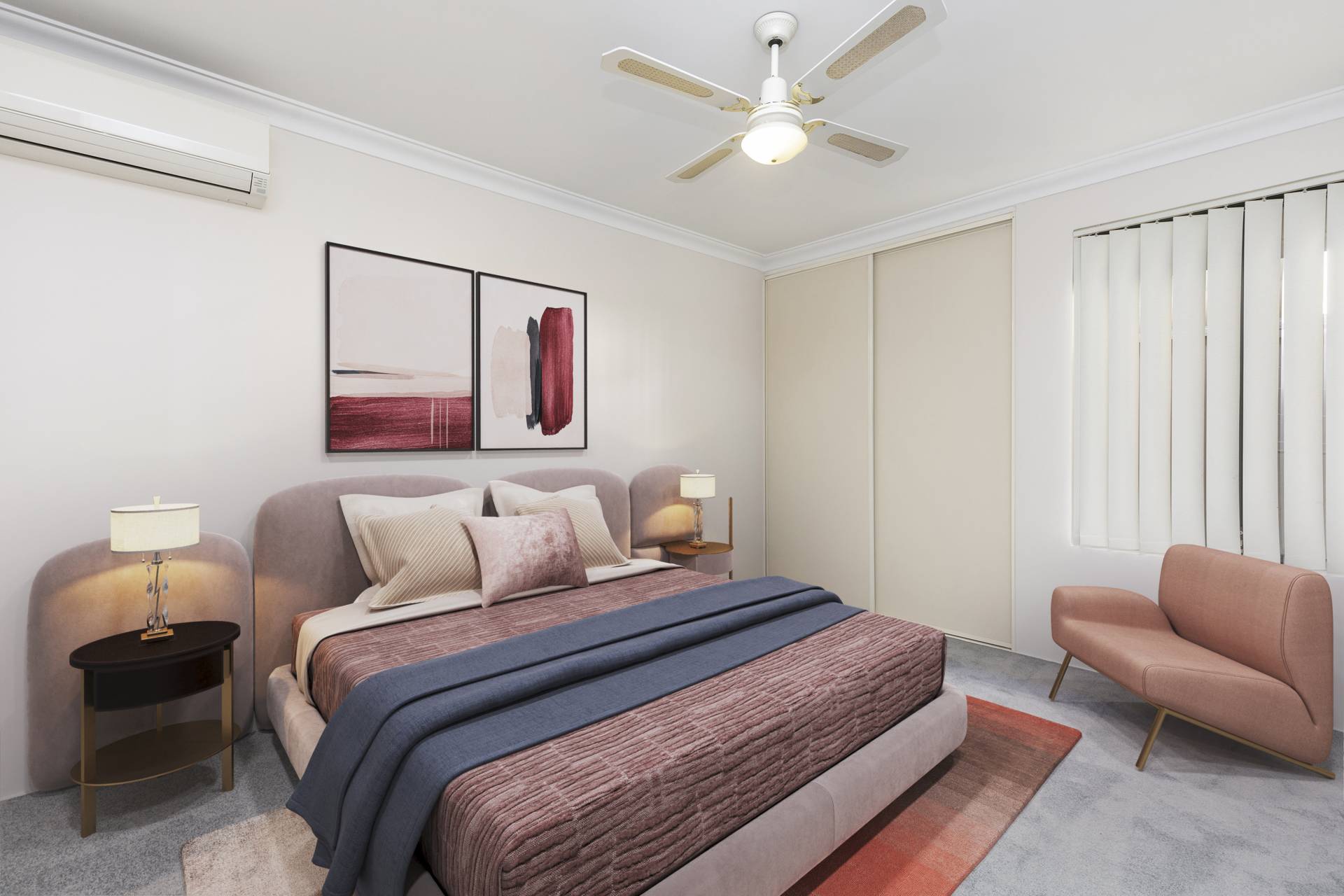 • Reverse cycle split system air conditioning to most rooms