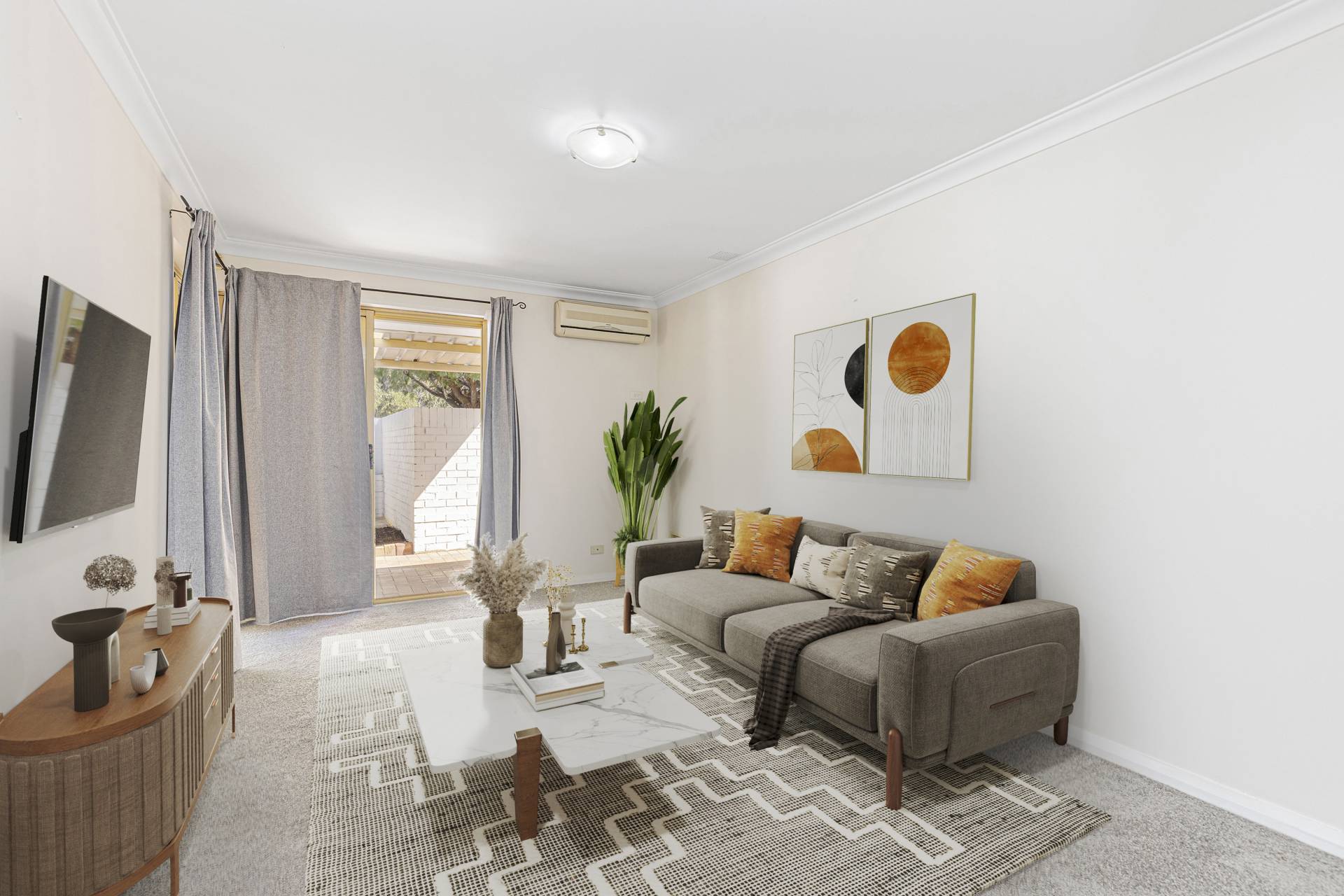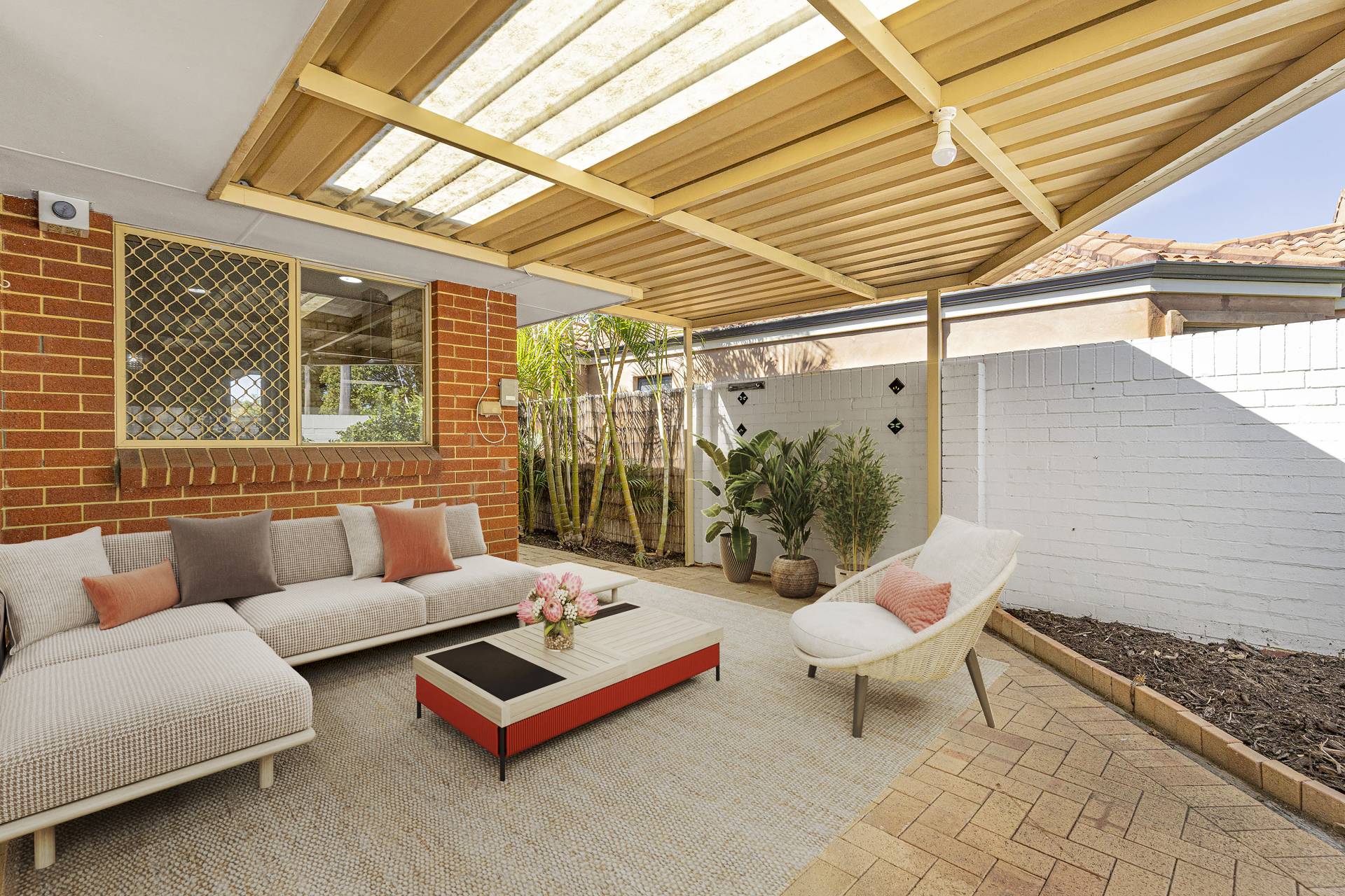 The spacious living area and laundry both open onto a large courtyard, complete with an undercover patio — perfect for relaxing or entertaining all year round.  With two split system reverse cycle air conditioners, you'll stay comfortable no matter the season.