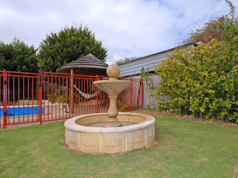 * Fenced salt chlorinated pool with solar cover and thatched gazebo