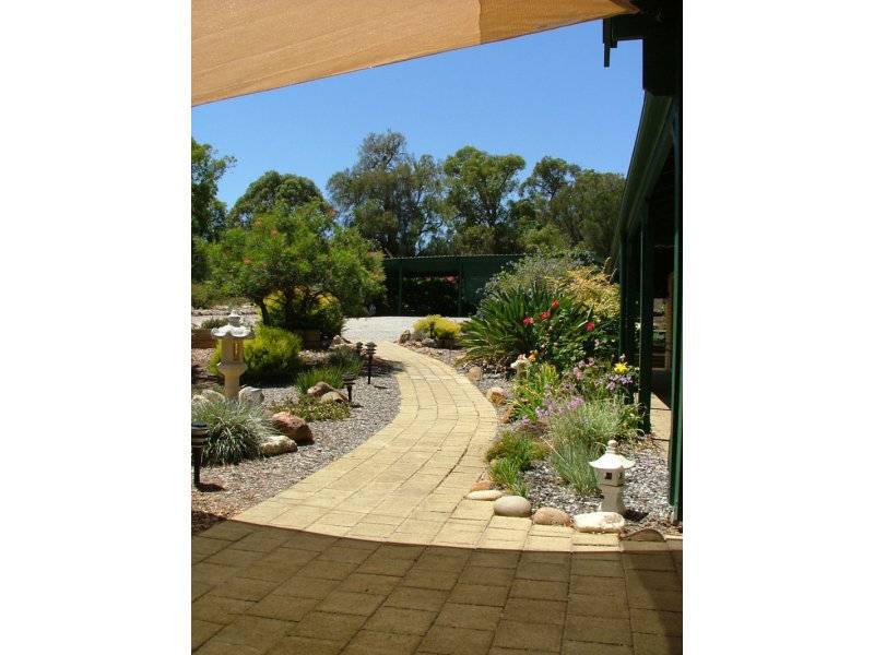 Large 4 x 2 home surrounded by verandahs. The entrance is tiled and to the right is a large carpeted formal lounge and dining. To the left of the entry is the family room area and an informal eating area. The kitchen is centrally located as is the hub of all good homes. The kitchen windows look out over a beautiful garden full of birds and both native plants as well as roses. Down a long passageway are the 3 huge double bedrooms with their own built in robes, the second bathroom is conveniently located close by. At the end of the passageway is the master suite which is huge and has a walk in robe and ensuite. The home is well cared for and air conditioned throughout. Some feature outside include reticulation from the bore, drip feeders, vegetable patch, hot house, shed, garden shed, huge patio and under cover parking for 5 cars.