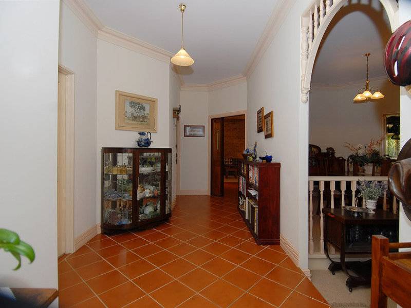 The semi circle driveway leads to a double lock up garage and the front of the home which has a wonderful federation style tiled entry hall with stained glass side lights, fancy cornices and taller than usual ceilings.