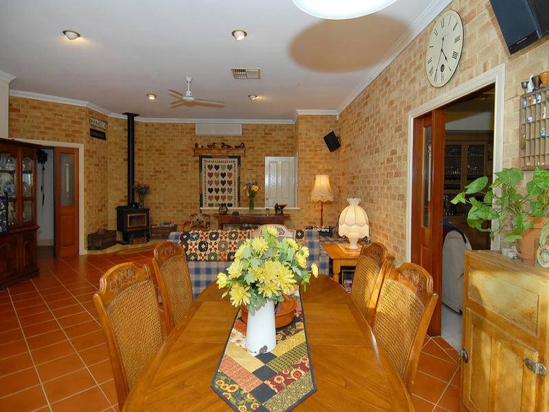 Beyond the kitchen is the spacious family room and meals area which is heated by a slow combustion heater.