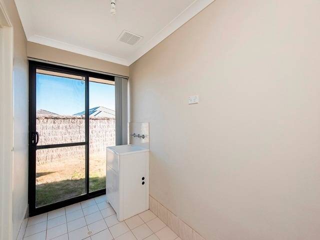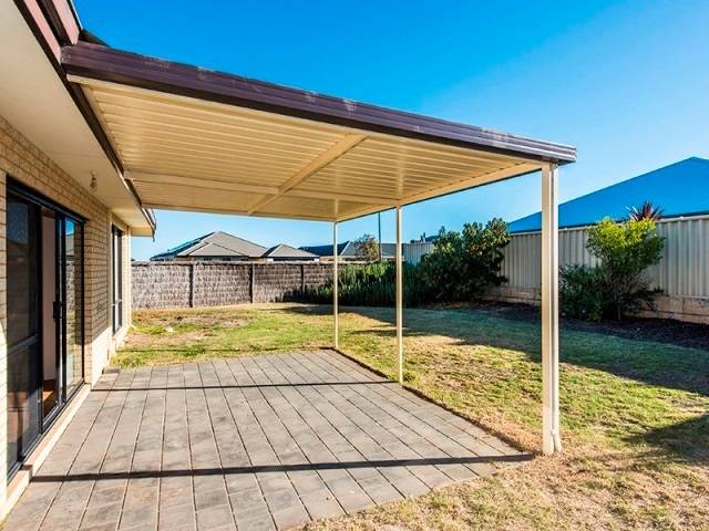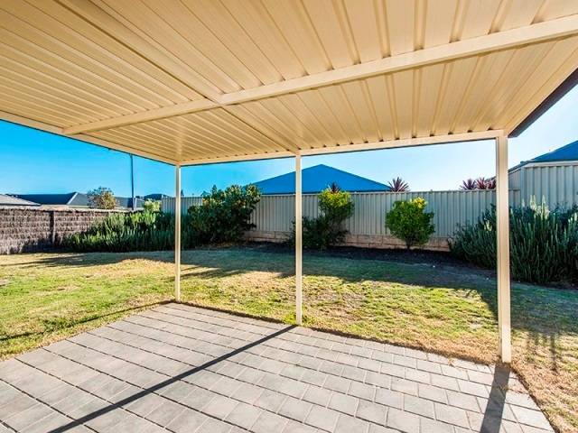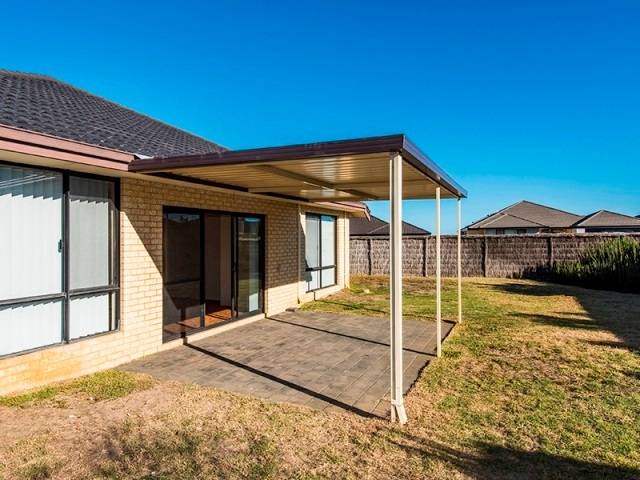 Rear undercover patio overlooking level garden, room for vegies, and play equipment.