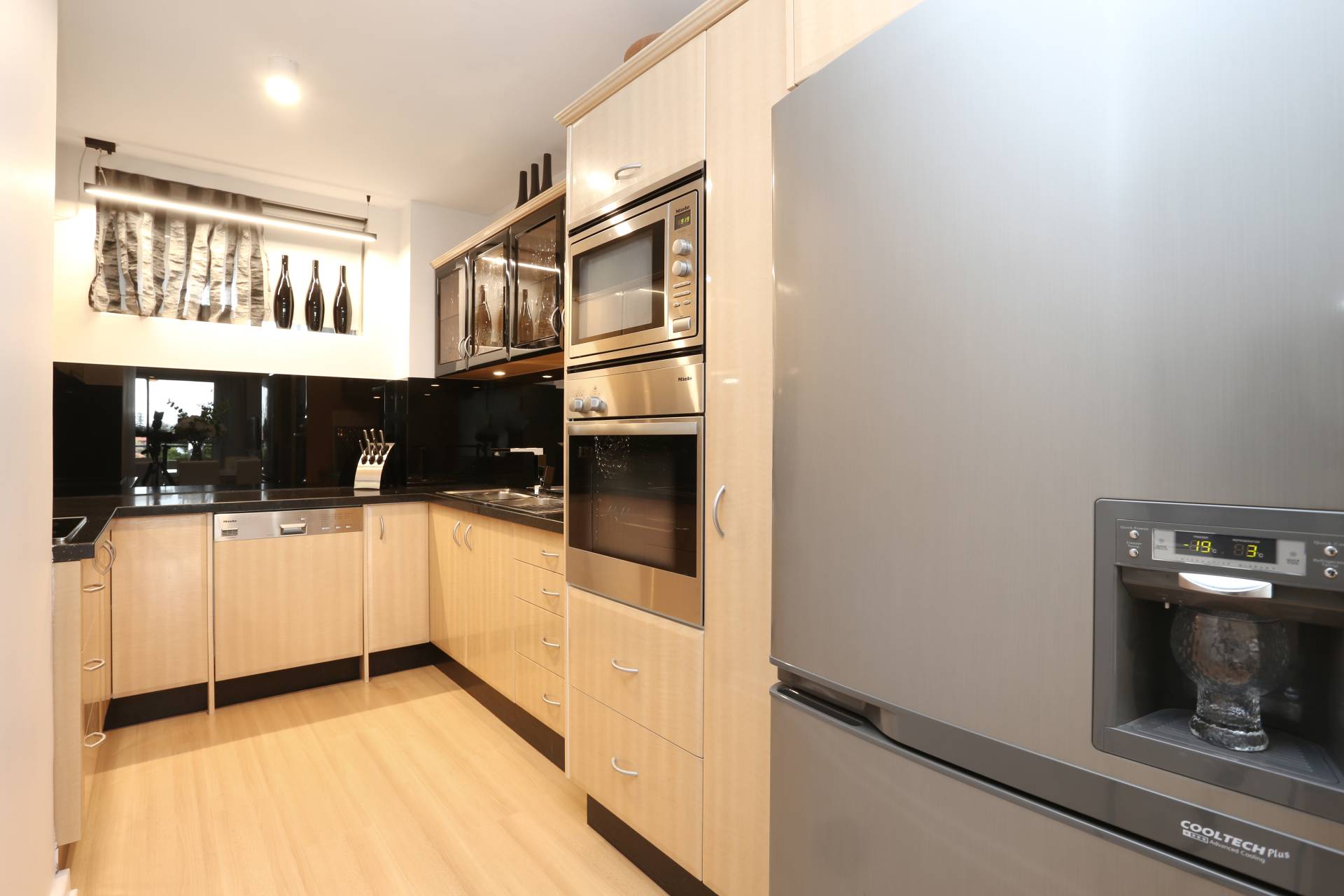 Miele Dishwasher, Miele Cooktop, Miele Oven, plus Miele Convection Microwave all included.  Quality custom cabinetry throughout with functional study nook built into entry, good storage spaces created, and all designed with lifestyle in mind.